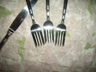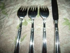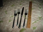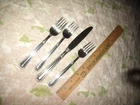 Wonderful Fine Quality Pfaltzgraff 18/8 Stainless Steel Flatware in the Providence Pattern that includes: One Dinner Knife and Three Dessert Forks, great weight and well balanced in-hand for easy dining use, normal careful wear clean condition, beautiful attractive classic design pattern, non serrated blade on knife. Please ask questions before bidding as no refund is offered. Thank you. Will be carefully packed and shipped in USPS Priority Flat Rate Mail that includes insurance, tracking and quick delivery in USA Only. ***Please send your destination zip code Before Bidding for an alternate USPS Mail shipping cost...riann53.