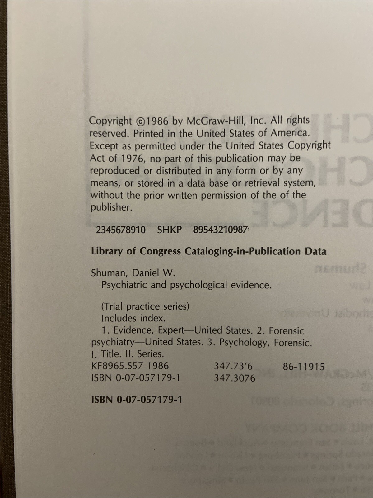 Publication Year:1986Subject:Psychologygtin13:Does not applyType:TextbookISBN:Does not applySubject Area:PsychologyPublication Name:Psychiatric and Psychological EvidenceAuthor:Daniel W. Shuman
