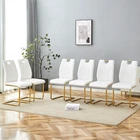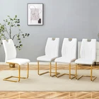 Premium Materials for Durability & Comfort High-Quality PU Leather : Soft to the touch, scratch-resistant, and incredibly easy to clean—just wipe away spills or stains with a damp cloth. Boasts excellent breathability, so you'll stay comfortable even during long meals or extended work sessions. High-Density Sponge Filling : Both the seat and backrest are filled with high-resilience sponge that offers exceptional rebound. Sits comfortably and maintains its shape over time, no sagging or loss of support. Sturdy Gold Metal Legs : Features a sleek gold metal frame that adds a touch of luxury to any decor. Built for stability, each chair supports up to daily use while maintaining a delicate, modern visual appeal. Anti-Slip Adjustable Feet : Thoughtful adjustable bottom feet prevent scratches on hardwood, tile, or carpet floors. Also ensures the chairs stay stable on uneven surfaces—no wobbling! Ergonomic Design for All-Day Comfort Designed with your comfort in mind! The elongated backrest hits at the perfect height to cradle your lower back, conforming to your waistline for optimal support. Smooth, streamlined lines create a comfortable silhouette that reduces fatigue, making these chairs ideal for long dinners, workdays, or meetings. Product Specifications Item Details Assembled Dimensions (L×W×H) 15.70 × 16.00 × 37.40 inches Product Weight (per chair) 13.67 lbs Package Dimensions (L×W×H) 37.60 × 21.65 × 18.50 inches Package Weight 86.42 lbs Material Metal (legs) + PU Leather (upholstery) + High-Density Sponge (filling) Color White + Gold (Black + Gold also available—mix & match for your decor!) Hassle-Free Assembly & Peace of Mind Quick & Easy Assembly : Includes detailed installation instructions and all necessary hardware. Most users can assemble a chair in just 15-20 minutes—no professional tools needed! 1-Year Warranty : We stand behind our quality! Enjoy a 1-year warranty against manufacturing defects for total peace of mind. 30-Day Free Return & Exchange : Not satisfied? Return or exchange your chair set within 30 days of delivery—no questions asked! Color Variation Notice: Due to differences in display devices (monitors/phones) and lighting conditions, there may be a slight color difference between the actual product and the images. This is a normal phenomenon and not a quality issue. Transform your space with style, comfort, and durability—order our White PU Dining Chair Set of 6 today and enjoy premium quality with unbeatable after-sales support!
