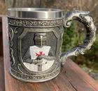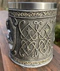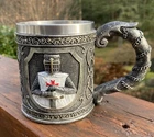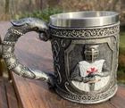 Product Description Decorative Crusader Knight Tankard Material: Resin and Stainless Steel Decorative Only: Yes Product Information: Wipe clean only, do not immerse in water. Height 10.5cm Width 15cm Depth 9.5cm Weighs .43 kgs Barely used , some wear on UPC barcode, absolutely like new condition no damage