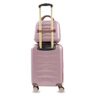 Puiche Jewel 2-Piece Rose Gold Carry-On Weekender Expandable Spinner Luggage Set, suitcase Elevate your travel experience with the Jewel collection by Puiche - a stunning two-piece set featuring a chic vanity case and a spacious carry-on. The carry-on offers smart organization with a roomy compartment, zippered separator, mesh organizer, and elastic clothing straps. Glide effortlessly with four 360° double spinners and an adjustable telescopic handle. Stay prepared with the vanity case's ample space and inner elastic straps, perfect for toiletries and cosmetics during air travel. Chic design: the scratch-resistant hardshell boasts an eye-catching pattern, complemented by accents for a contemporary yet classic look Smart organization: the carry-on opens to reveal a spacious compartment with a zippered separator (up to 20% more), mesh organizer, and elastic clothing straps to keep your belongings neat and organized Effortless mobility: enjoy seamless travel with four 360° double spinners and an adjustable telescopic handle on the carry-on Accessory bliss: the vanity case provides secure storage for toiletries and cosmetics with 2-pouches and buckled elastic straps Dimensions (Weight): 20 x 13.5 x 9 in. (5.9 lb.) +2 in. for external / 11 x 12 x 7 in. (1.9 lb.) +2 in. for external