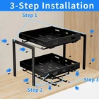 This 2-tier cabinet pull-out spice rack is an ideal spice organizer for kitchen cabinets. With dimensions of 11.9 inches in width, 10.8 inches in depth, and 9.2 inches in height, it can easily hold spice bottles of various sizes and shapes, allowing you to conveniently store and organize all your spices. The slides are designed with a ball-bearing system to ensure smooth and quiet operation. The full-extension slides allow you to easily access all the spices in your cabinet, making cooking a breeze. Made of high-quality metal, the spice rack is rust-resistant and not easily deformed. The independent slide design allows the upper and lower baskets to move independently, making it easy to quickly find and reach the spices you need. The top basket is height adjustable, perfect for storing tall spice bottles such as olive oil and flaxseed oil, providing ample organizing space for all your spices and keeping your cabinets neat and tidy. Installation is very simple, requiring at least a 13-inch wide and 12-inch high cabinet space. No assembly experience is needed, and it can be installed in just two easy steps. It is compatible with both cabinets with and without edge lips. Spice Rack: 2 tier pull out spice rack organizer for cabinet is for kitchen cabinets, increase cabinet storage space. Spice rack organizer size 11.9''Wx10.8''Dx9.2''H. As spice spice for cabinet, they can hold spices of various sizes and shapes. Allows you to easily access and organize all your spice bottles. Note: Jars not included. Smooth Sliding and Quiet Slide Out: The slides are designed with a ball bearing system to ensure that the cabinet spice organizer are smooth and steady during sliding, with no noise at all. The full extension slides allow you to easily access all the spices in your cabinet. Let you enjoy cooking food completely. Quality Metal and Independent Slides: The spice rack made of high quality metal, not easy to deform the surface is painted to prevent rusting. Shelf design, spice jars will not tip over or fall out of the basket when the spice rack slide out. Ensure spice jars are neatly arranged. The upper and lower baskets slide independently of each other, making it easier to find and reach the spices. Wide Use: Spice racks for inside cabinets storage variety of sizes of spice jars and bottles, perfect for storing spices, seasoning grinds, grains, canning jars, salt and pepper grinders and more. The top basket is height adjustable for storing tall bottles of spices such as olive oil and flaxseed oil. Provide enough organizing space for all your spice storage, cabinets are not cluttered. Easy to Assemble and Install: Our spice shelf organizer for cabinet it requires at least 13'' wide x 12''high cabinet space. Please measure your cabinet first. No assembly experience required, assembles in 2 easy steps. Note: Cabinets with edge lip! Cabinets without edge lip! Works for both 2 kinds!