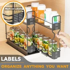 MORE SPICES IN LESS SPACE - Easy slide out spice rack organizer that holds a large number of spices in the small area. No more tip-overs of front items. This sliding spice rack gives your easy access to all seasonings stored in your cabinet. This is also a great cabinet organizer. 415 SPICE LABELS INCLUDED - Package comes with 340 preprinted labels, 75 blank labels for custom organization. You can label your spices on the rack front panel, which offers a much faster find while cooking. Organize like a . HEAVY DUTY SPICE RACK FOR CABINET - Ball bearing glides ensure smooth sliding. Full extension glides offer you easy complete access to all spices inside the kitchen upper cabinets. Bottom panel is designed to clear any cabinet lip. DURABLE MATERIAL TO LAST - Made of premium quality steel construction, this seasoning organizer is built to last. Our space saving spice racks drawers can complement your home storage system and improve your cabinet space usage. EASY INSTALLATION - It is easy to install by removing the sliding base bottom. This rack needs 5.2"wide x 10.75"deep x 12"high cabinet space with standard spice jars on the upper tier.
