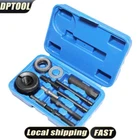 AC Puller & Installer Set for alternator and power steering pulley, including the Quad 4. Fits Pulley shafts of 1-1/8", 1-1/4", 1-3/8", 1-5/8". Manufactured from high-strength aluminum for extra durability and longevity. Includes a blow molded carrying case with handle that provides safe storage, quick organization, and easy transportation. Comes complete with adapters for unique style pulleys. Has reversible split jaws for easy access to pulley flanges without damaging pulley. Installs & Removes pressed on alternator, power steering pump and other pulleys on late model GM & Chrysler engines as well as most other vehicles.