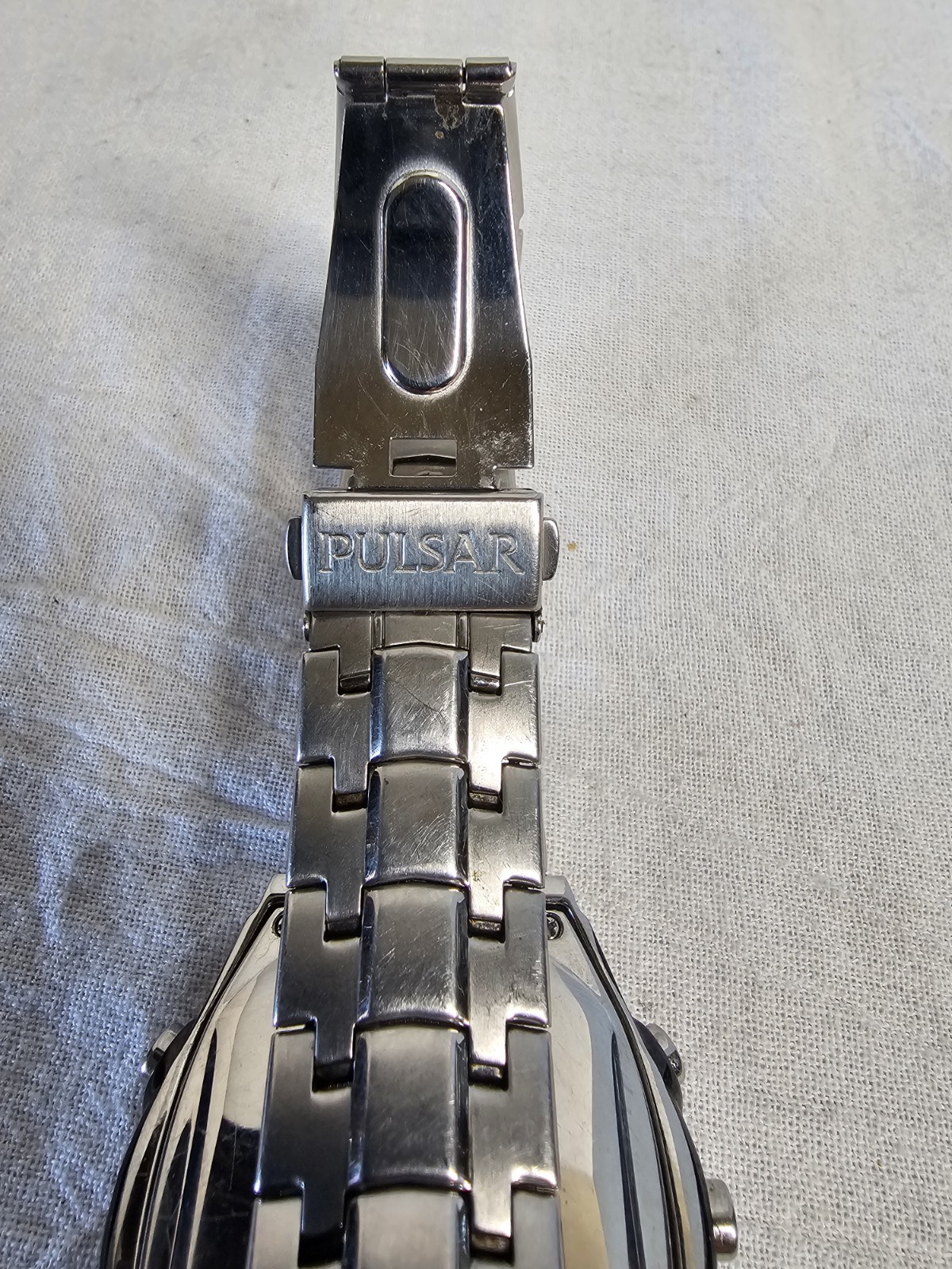 Pre-owned all work have a few scratches on face watch, may have signs of use or ege, please see the pictures for details before you take a decision to purchase, you have the last word. thank you.... the stand is not included.