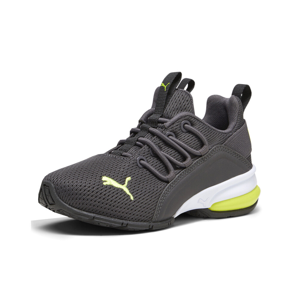 Axelion Training Shoes (Little Kid-Big Kid) Product Details Knit upper Lace up closure Webbing pull loops Motion-control midsole Non-marking rubber outsole Axelion is a true gamechanger for everyday shoes. A breathable knit upper combines with a motion-control midsole, exaggerated lacing and bold branding for a next-level design. Additional Details Color: Grey Occasion: Casual Gender: Boys Age: Youth Brand: Puma