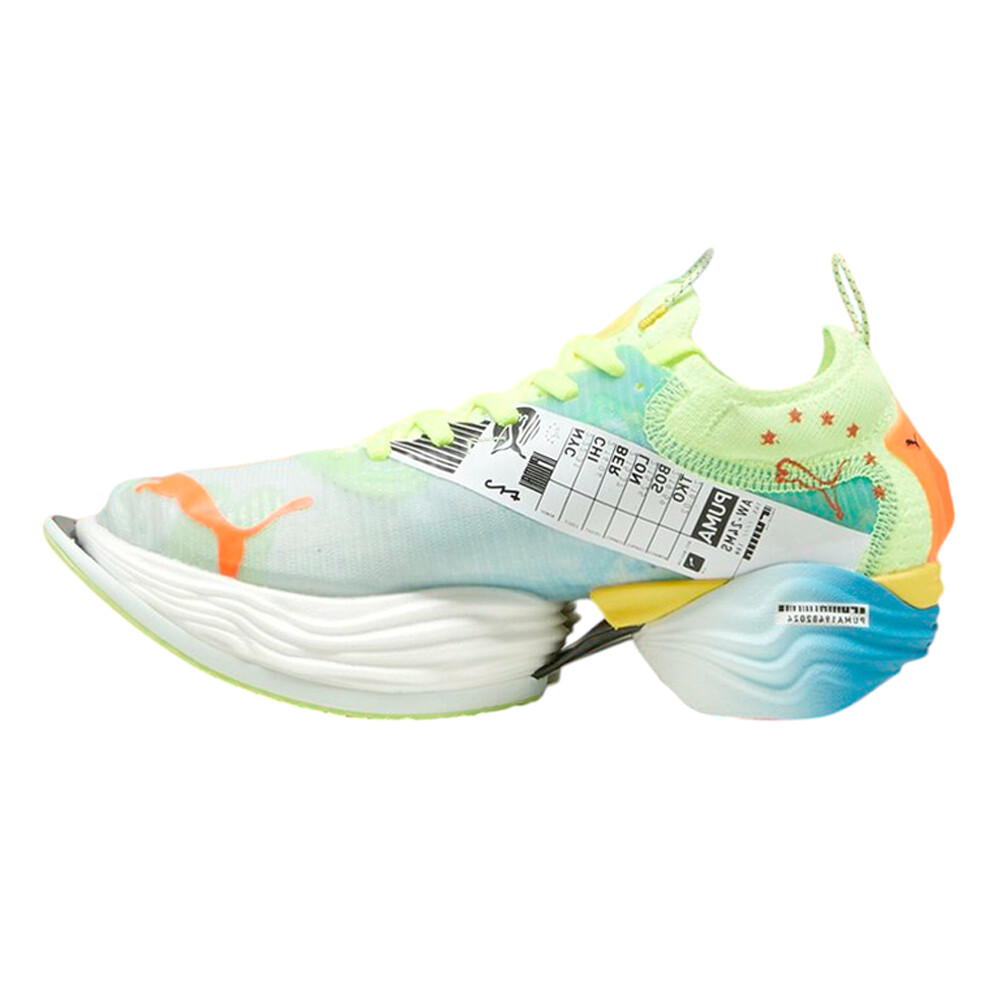 Fast-R Nitro Elite 2 Marathon Series Running Shoes Product Details Regular fit ULTRAWEAVE upper Stack height: 40mm/32mm? Weight: 240g (size UK8)? Heel-to-toe drop: 8mm? FAST-R NITRO ELITE 2 is PUMA's ultimate race-day footwear with enhanced NITROFOAM ELITE and PWRPLATE technologies. Enjoy a more propulsive ride and optimised running economy with increased stack heights and an aggressive shape. The ULTRAWEAVE upper ensures a lightweight and secure fit, while PWRTAPE support keeps you firmly in control as you conquer your race-course. From short distances to marathons, this shoe offers unbeatable speed and cushioning for your best performance yet. Additional Details Color: Blue Occasion: Casual Gender: Womens Age: Adult Brand: