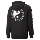 Graphic Hoodie x Staple Product Details Relaxed fit French terry jersey Hood with drawstrings Kangaroo pocket 100% Cotton The latest Puma x Staple collaboration takes inspiration from Gidra, a California newspaper founded in 1969 to be a powerful Asian-American voice during the American civil rights movement. Pieces from the collection combine Staple’s trademark clean, thoughtful aesthetic, with bold colors and graphics honoring Asian-American history. This hoodie is no exception, with a rubber yin-yang print on the back that incorporates both the Staple pigeon and the Puma Cat. Additional Details Color: Black Occasion: Casual Gender: Mens Age: Adult Brand: Puma