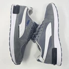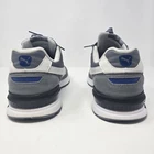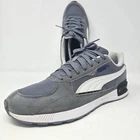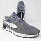 The Puma Graviton Men's Trainers in gray and white are lifestyle sneakers designed for comfort and style. These athletic shoes feature a lace-up closure, low-top shoe shaft style, and a rubber outsole for durability. With a foam insole and fabric lining, these sneakers offer a comfortable fit for all-day wear. Perfect for activewear, casual wear, or workwear, these Puma trainers are a versatile option for any season. Made with mixed materials and a standard shoe width, these sneakers are a practical and fashionable choice for men's footwear. ** Last Photo shows small stain on shoe **