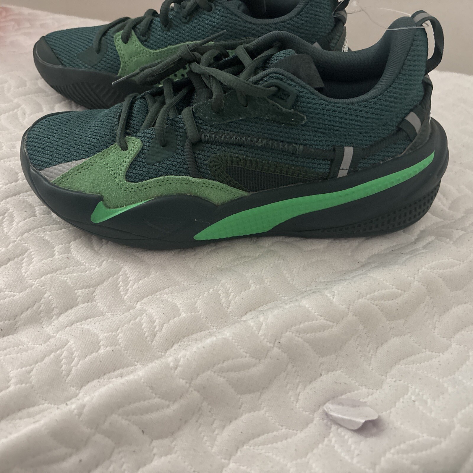Elevate your sneaker game with these Puma RS-Dreamer sneakers in a stylish Bistro Green colorway. These sneakers feature a comfortable knit upper material and a sleek design that's perfect for any casual occasion. With a US shoe size of 4.5, these sneakers are a great fit for men looking for a stylish and comfortable addition to their shoe collection. The Puma RS-Dreamer sneakers are part of the Puma Rs-Dreamer product line and are designed with the iconic Puma brand logo. These athletic shoes are perfect for any sports activity or casual wear. Don't miss out on the chance to own a pair of these trendy and high-quality sneakers.