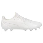King Pro Firm Ground Soccer Cleats Product Details Leather upper Lace up closure Flexible sock collar TPU outsole with conical studs Suitable for use on firm natural surfaces The PUMA King is soccer royalty. It’s been in the game since 1968 and has been worn by soccer legends from Pele to Matthaus. Engineered in Italy, the King Pro features a soft padded leather upper and flexible sock collar designed to mold to the foot. The lightweight studded outsole makes it the fastest, lightest King yet. Additional Details Color: White Occasion: Casual Gender: Mens Age: Adult Brand: Puma