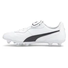 King Top Firm Ground Soccer Cleats Product Details Leather upper Lace up closure for secure fit Suitable for use on firm natural surfaces Lightweight TPU outsole with conical studs The PUMA King Top Firm Ground Soccer Cleats feature a premium leather upper that delivers a luxurious and timeless look. The classic design, combined with modern enhancements, ensures a comfortable fit and exceptional ball control. Additional Details Color: White Occasion: Casual Gender: Mens Age: Adult Brand: Puma