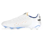 King Ultimate Firm Ground/Artificial Ground Outsole Soccer Cleats Product Details Lightweight outsole with external heel counter, integrated stability spine, and conical studs FG/AG: Firm ground/Artificial ground outsole Suitable for use on both firm natural surfaces and artificial grass (4G) PUMA Formstrip on the lateral vamp Control never felt this comfortable. An icon that spans generations, the KING is back with bold design upgrades and innovative materials that work better – for the player and for the planet. Like the all-new K-BETTER upper material, made with recycled content to reduce environmental impact while improving the signature touch, comfort, and stretch resistance. The new lightweight outsole features an external heel counter, integrated stability spine, and conical studs, so you have as much control over your movement as you do over the ball. Additional Details Color: White Occasion: Casual Gender: Mens Age: Adult Brand: Puma