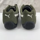 Puma Sparco x Speedcat OG "Forest Night" retro trainers racing shoes in olive green & white suede with black midsoles, 307171-04. Size 9.5 US. Approximate Measurements of outsoles: Length (toe to heel): 11.5" Width (across ball of foot): 3.5" Width (across heel): 2.5" Condition: Shoes are new without box. No wear or damage. Please see photos for details and please use above measurements to compare these to a well-fitting pair of shoes you currently own. Tags: racing, classic, driving shoes, sneakers, trainers, retro, classic