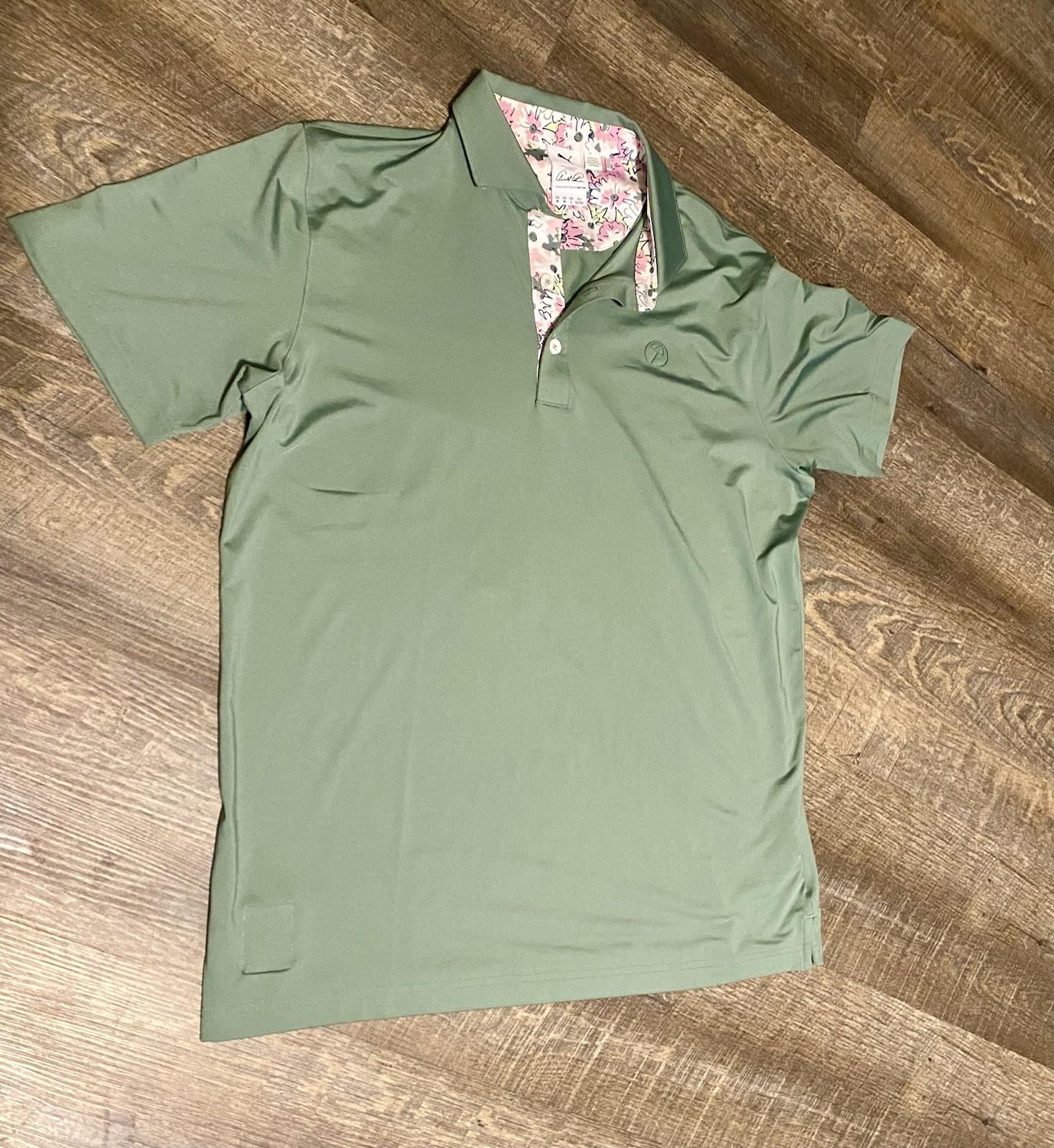 The Puma Men's Arnold Palmer AP Floral Trim Golf Polo Shirt in Eucalyptus is a stylish and functional piece of men's golf clothing. Made from polyester, this short sleeve polo features a collared neckline and comes in a size M. The shirt is designed specifically for golfing activities, making it perfect for performance on the course. With its classic polo style and subtle floral trim, this shirt combines comfort and style, ideal for any golf enthusiast.