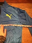 This is a men’s Puma reversible bomber jacket. One side is blue and yellow and the other side is black and gray with windowpane plaid. The size is large. Condition is Pre-owned. It has a few stains on front of blue side. Please see pictures. Shipped with USPS Priority Mail.