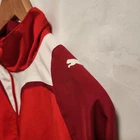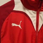 Pre-Owned, has flaws, see photos. Men's size M, Puma, windbreaker. Red and white, full zip, elastic cuffs and waist and a mesh lining. Puma logo on the front, the shoulder and the left sleeve features a lenticular picture that changes. 100% polyester, made in China, machine washable. Measurements are approximate: Pit to pit - 22.5" Shoulder to shoulder - N/A Sleeve length - 32.5" Overall length - 29.5" Washed per label instructions, stored in a smoke-free and pet friendly environment. Thanks for looking! All orders ship within two business days, reasonable offers accepted.