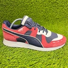 Puma RS-100 Nubuck Mens Size 9.5 Blue Red White Athletic Running Shoes Sneakers