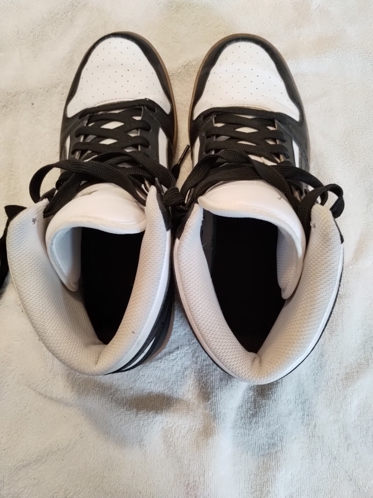 Just got these Puma sneakers and they're awesome! The fit is perfect for a 10.5, super comfy with great support. They look nearly new—just a couple tiny marks on the white parts, nothing noticeable. No tears or stains, and the soles are solid. Super happy with this pre-owned find, great value for the quality!
