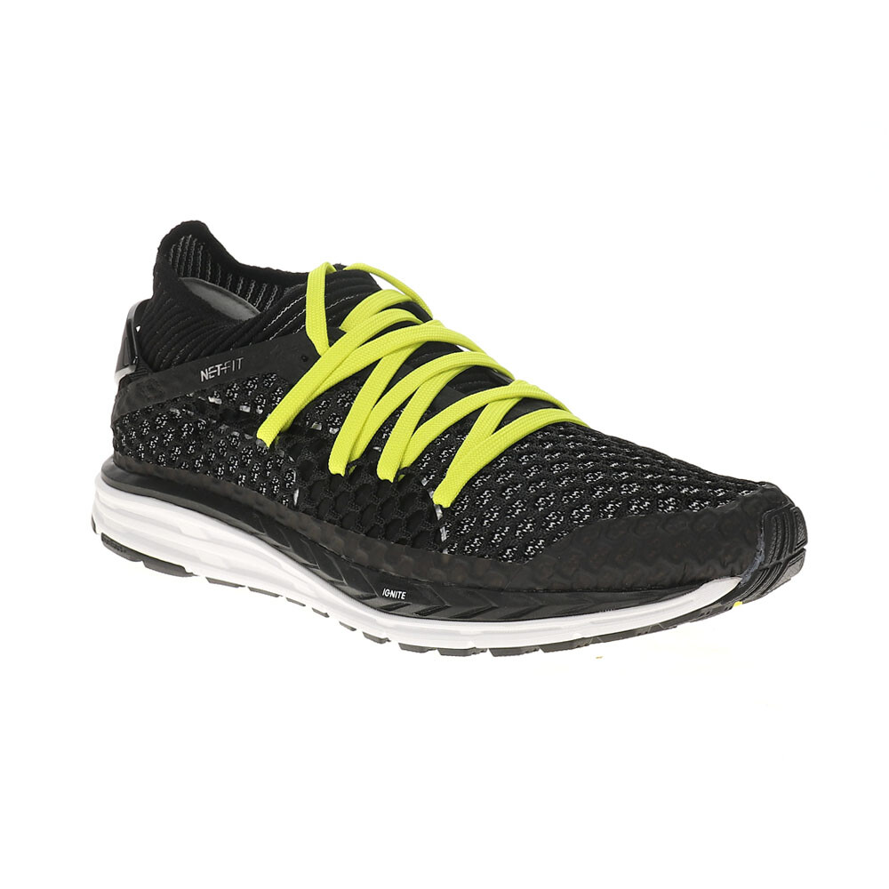 Speed Ignite Netfit Running Shoes Product Details Regular fit Textile upper Lace closure Cushioned midsole Rubber outsole These Puma men's sneakers are specially designed to provide you with maximum convenience and comfort during training or just walking. The two-component Ignite sole is specially molded and designed to significantly reduce stress and fatigue on your muscles. The textile panels have a unique technology that guarantees maximum air circulation and quick drying. Additional Details Color: Black Occasion: Casual Gender: Mens Age: Adult Brand: