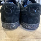 These Puma Suede Classic XXI sneakers in black are men's casual shoes with lace-up closure. They are crafted with suede uppers, cushioned insole for comfort, and breathable lining. The shoes feature a retro style with Puma branding, suitable for summer, fall, and spring seasons. The size is US 13 (UK 12, EU 47) and they are part of the Puma Suede Classic product line.