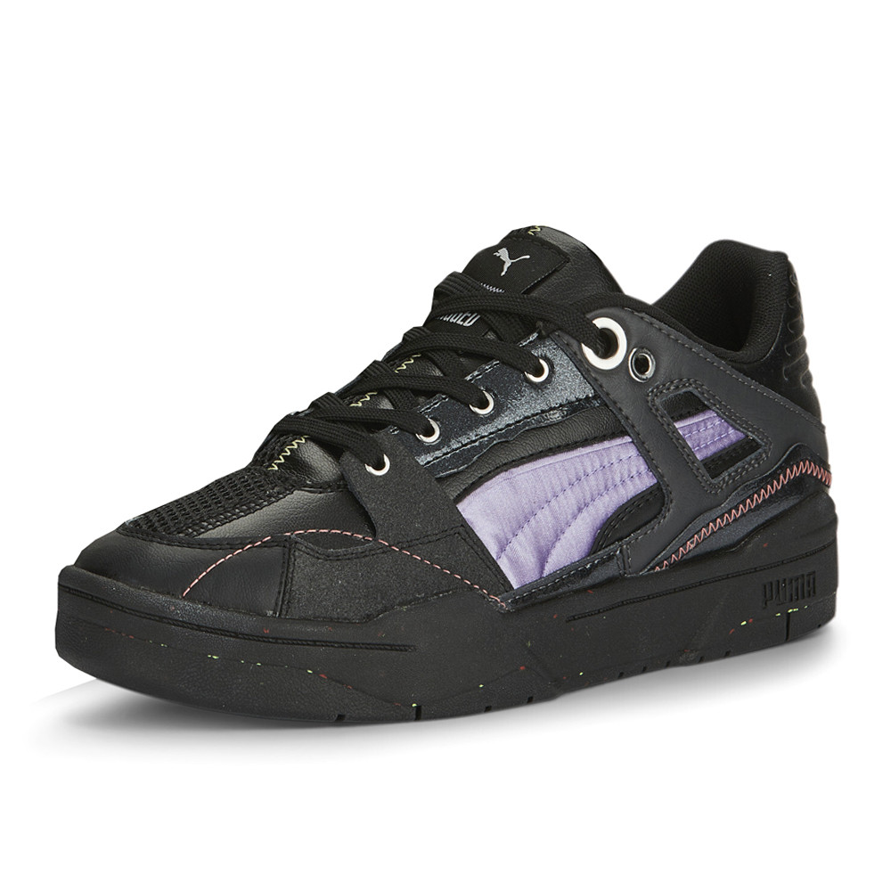 The Ragged Priest X Slipstream Lace Up Sneakers Product Details Low boot Synthetic and leather upper Recycled backing upper Recycled polyester Formstrip at lateral and medial side Rubber outsole Puma x The Ragged Priest celebrates the British fashion brand's grunge roots and unapologetic attitude. The collection is inspired by self-expression and subculture, featuring iconic prints and rip-and-repair details. This version of the Slipstream takes the OG model and updates it with contrast stitching and asymmetrical elements to refit the ‘80s-era sneaker for today. Additional Details Color: Black, Purple Occasion: Casual Gender: Womens Age: Adult Brand: Puma
