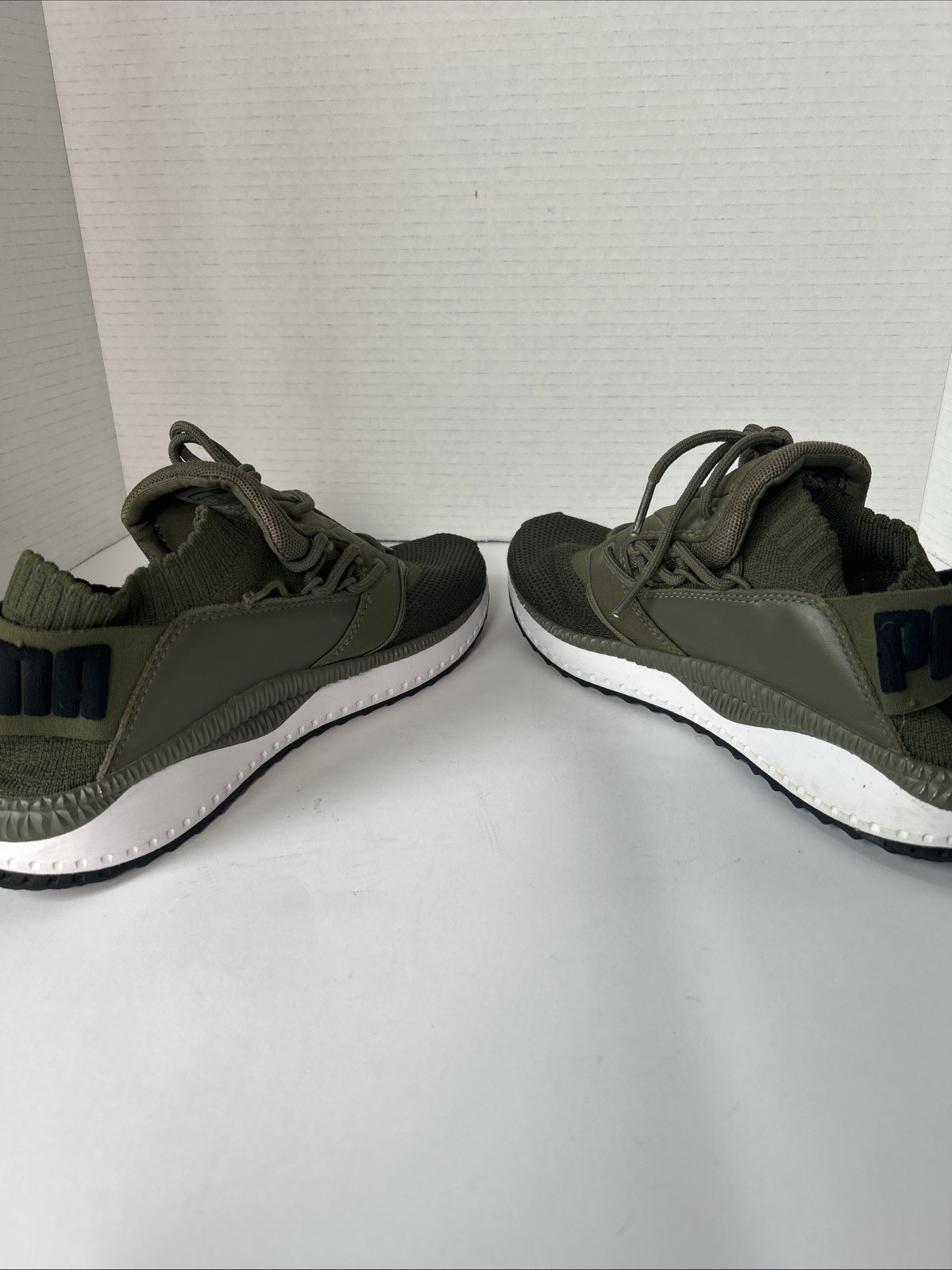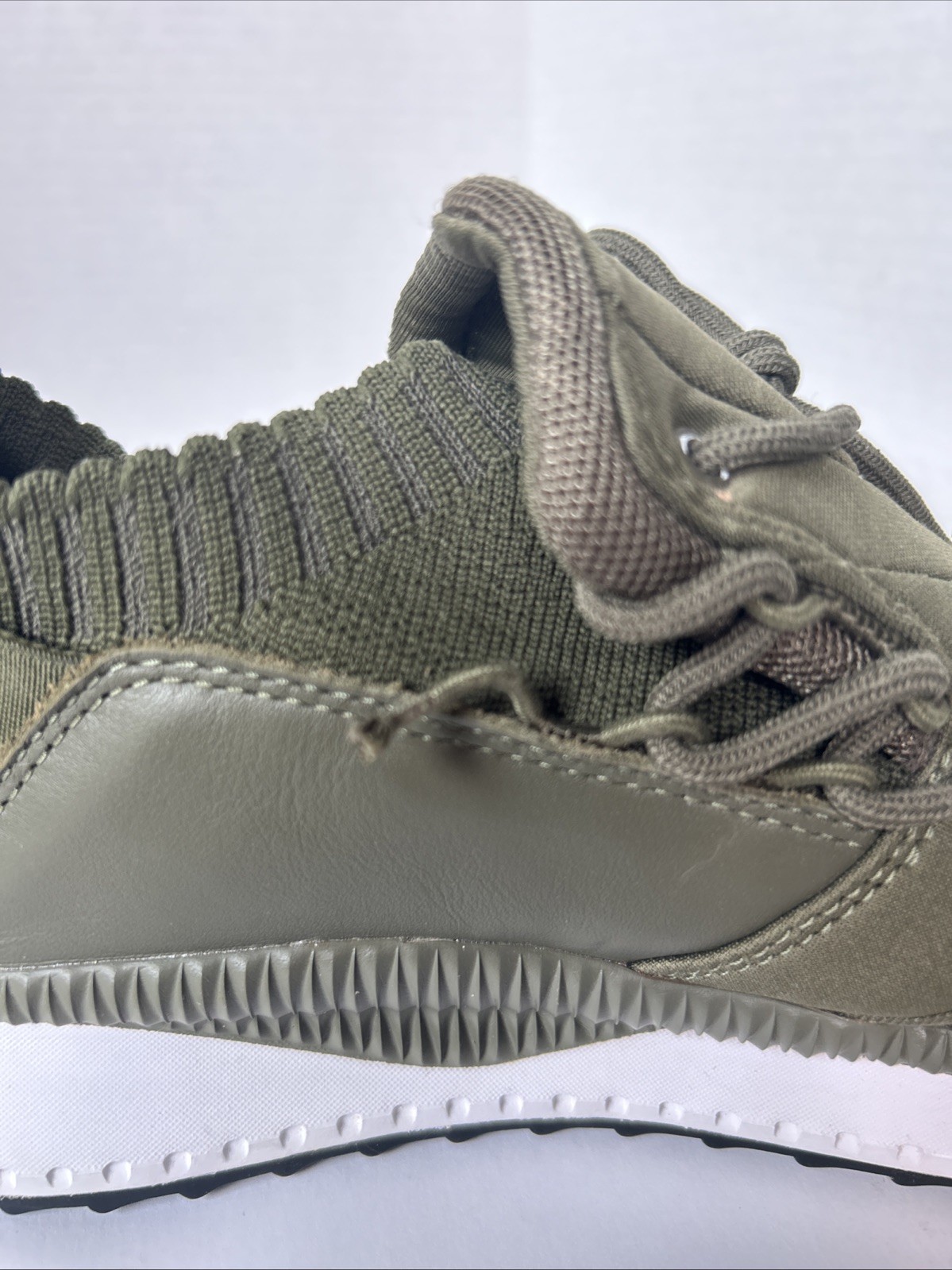 Shoes are in very good condition however there is a manufacturing defect on one of the lace up loops. See last picture for detailed photo.