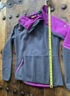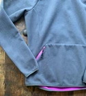 Puma Pullover Womens Extra Small Gray Pink Fleece Hooded Pocket Thumb Holes Athletic Jacket Condition: Good pre-owned condition, no major flaws noted. Very minor signs of light overall wear but no holes, stains, or significant imperfections. Main color is gray with vibrant pink contrast on hood lining, one sleeve, zipper pulls, and inside hem. Stylish panel design and color blocking. High-collar, half-zip hood with functional toggle. Zippered pocket at right front and zip pocket at left sleeve. Thumb holes at sleeve cuffs for added utility. Puma logo on left chest and sleeve. Large outline Puma logo on back lower side. ACTV technology tag present. Material: Soft midweight performance fleece (exact fiber content not shown in photos but feels like polyester blend typical for Puma fleece). Tag size: XS (Womens), US XS, D 34, I/E 38, F 36, UK 8. Please refer to flat measurements in photos for fit guidance. Features: Hooded, half-zip, color block, zip pockets, thumb holes, reflective logo details, athletic/outdoors style. Great for running, hiking, walking, travel, or layering. Made in China