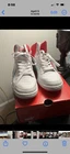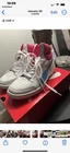 Slightly used but is in great condition. Shoes are white with a bit of blue and pink.