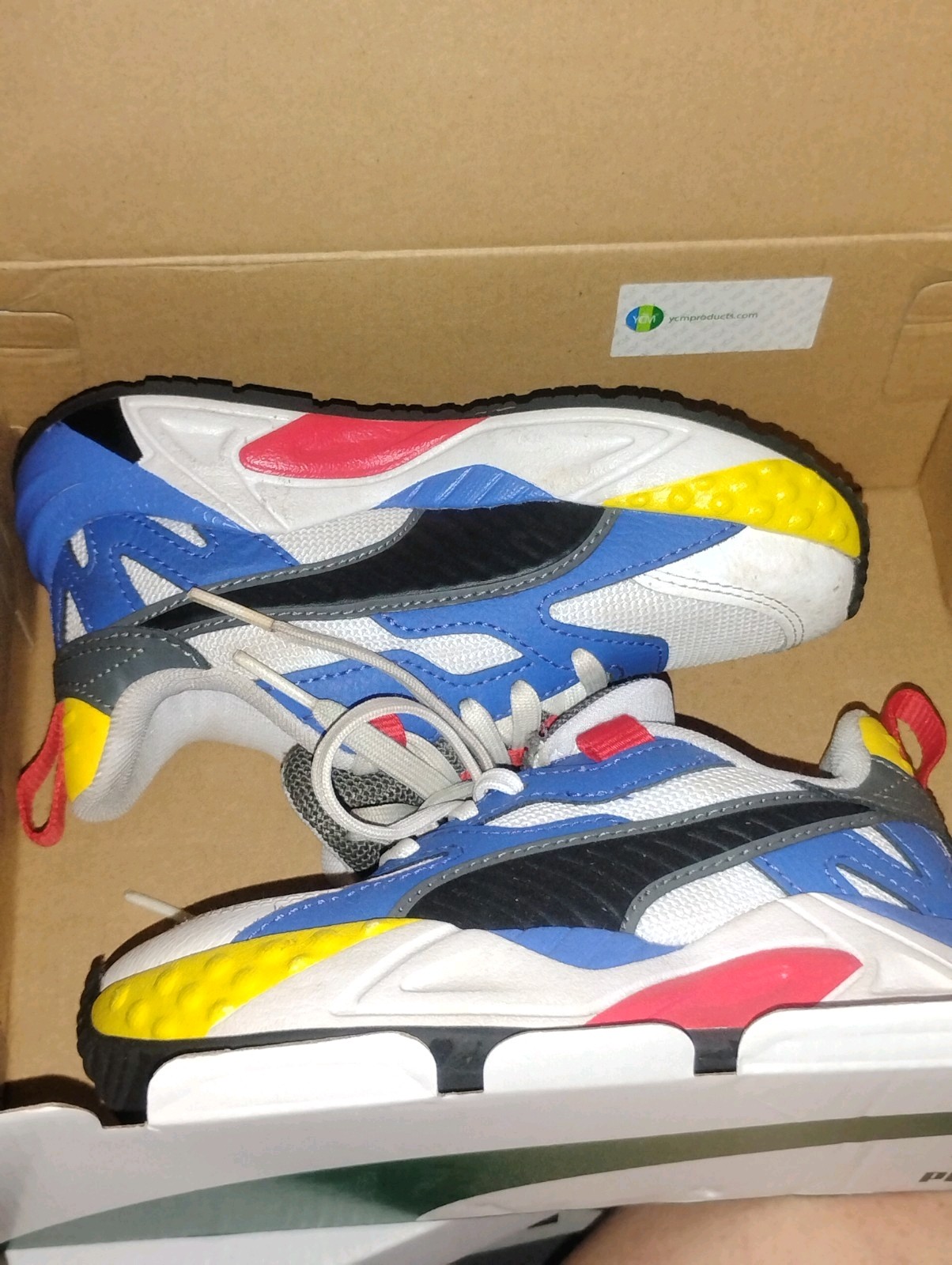 The Puma MB 03 sneakers, featuring a bold Red Blast/Safety Yellow color scheme with a hint of blue accents, are a stylish addition to any athletic shoe collection. Made with breathable mesh material, these sneakers are designed for men and part of the Puma Mb product line. The GutterMelo nickname adds a unique touch to the model, released in 2023 with a style code of 379231-01. Whether you're hitting the court or just want a fashionable sneaker option, these Puma MB 03s are sure to make a statement.