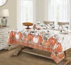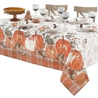 Pumpkin Gingham Country Rustic Bordered Thanksgiving Fabric Tablecloth, Autumn Farmhouse Pumpkin Vine Plaid Easy Care Fall Tablecloth, 52” x 70” Oblong/Rectangle SIZING: 52" x 70" Oblong / Rectangle (132 x 178cm) - Fits tables from 28 Inch x 46 Inch to 40 Inch x 54 Inch and Seats 4 to 6 People - Rectangle/Oblong STYLING:The Pumpkin Gingham Country Rustic Bordered Thanksgiving Fabric Tablecloth features a bordered design of farmhouse rustic orange and natural beige pumpkins with green and brown vine and berries twisted on a cottage styled orange, green and beige plaid border on an ivory beige background. FEATURES: Festive Easy Care, Soil Resistant and Permanent Press Kitchen and Dining Room Tablecloth for Fall, Autumn and Thanksgiving Dining, Entertaining, Parties, Picnics, Restaurants and Cafeterias. Indoor and Outdoor Thanksgiving Holiday Tablecloths Napkins sold separately. Easy Care 100% polyester construction is machine washable and tumble dry and requires little or no ironing