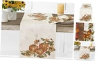 30 Days Return Policy Fast Delivery Trusted seller Stockbridge Pumpkin Harvest Bordered Thanksgiving FabricTable Runner, Autumn Fall Leaf, Sunflower and Acorn Border Print 70 Inch Long Table Runner Product Description Easy Care 100% Polyester, Soil Resistant, No-iron Fabric Placemats Imported Stockbridge Pumpkin Harvest Bordered Thanksgiving FabricTable Runner, Autumn Fall Leaf, Sunflower and Acorn Border Print 70 Inch Long Table Runner Bordered fabric 13" wide x 70" long table runner STYLING: The Stockbridge Pumpkin Harvest Bordered Thanksgiving, Easy Care Fabric Tablecloth features a 4 sided border with bold pumpkins on their vines with sunflowers, fall leaves and acorns and a center rectangular leaf garland pattern on a two tone beige leaf background with a rust border. FEATURES: Beautiful Easy Care, Soil Resistant and Permanent Press Kitchen and Dining Room Yable Runne for Fall, Autumn and Thanksgiving Dining, Entertaining, Parties, Picnics, Restaurants and Cafeterias. Indoor and Outdoor Thanksgiving Holiday Table Runners Napkins sold separately. Easy Care 100% polyester construction is machine washable and tumble dry and requires little or no ironing Shipping Returns Payment Shipping Shipping is FREE to all addresses other than APO/PO boxes in the lower 48 states. All our stock ships from US-based warehouses. Shipped via USPS or UPS (depending on location and package weight) Unless stated otherwise, all orders will ship within 24-72 hours of your payment being processed. Check our feedback to see the great reviews of FAST shipping we offer. Returns As our valued customer, we will do our best to make sure the product you receive arrives to you on time and as expected. If you are not satisfied with your purchase, please contact us within 30 days of receiving your order to process a return. Payment We currently accept payment via eBay managed payments only. Once payment is cleared, we will dispatch your shipment within 1-3 business days. Please refer to the "Shipping" tab for more information regarding shipping speed to your destination.