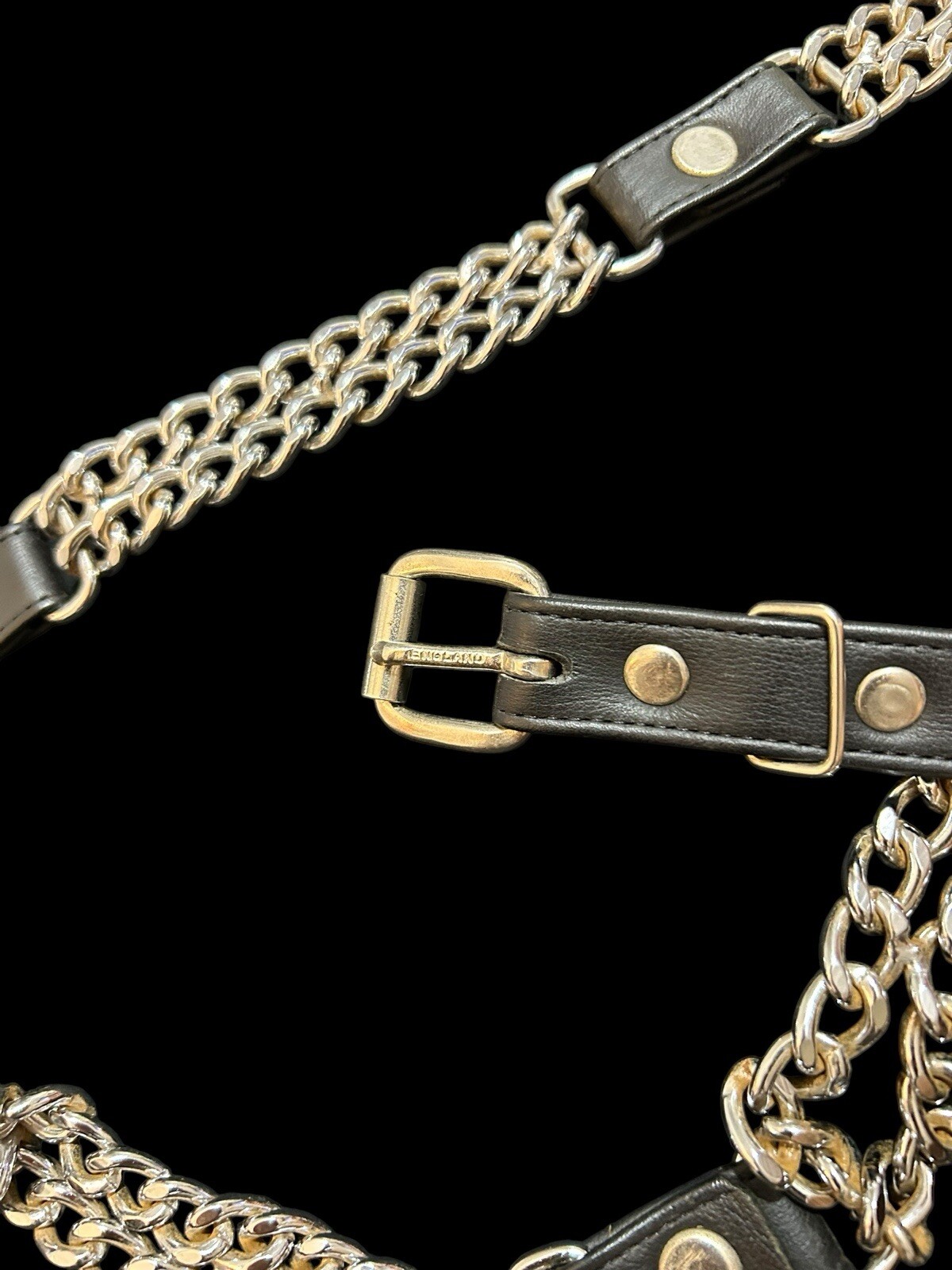 Punk Goth Chain & Leather Belt Men Size Large Black Silver Toned Metal 46” Long Good used condition . Normal signs of wear and tear, minor scratches. Please study pictures carefully before purchasing Feel free to ask us any questions. Thank you for visiting our store! 12