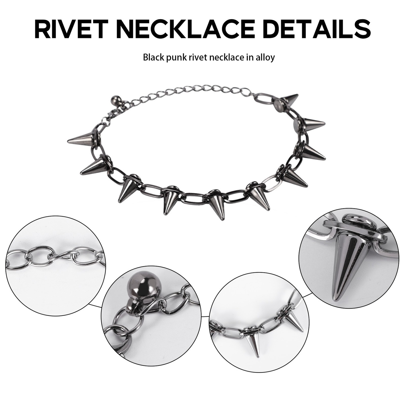 Metal Spikes Studs Rivets Punk Goth Necklace Choker Collar E3W61690 The new, high quality! Charming necklace Good for going or banquet Material: Metal Size: . 22 mm Condition: 100% new Weight: . 33 g Quantity: 1 pc Length: . 403-446 mm Conversion: 1 mm = 0.0394 inch, 1g = 5 carat Package Contents: 1x Necklace Only the above package content, other products are not included. Note: Light reflection and different displays may cause the color of the item in the picture a little different from the real thing. The measurement allowed error is +/- 1-3cm.