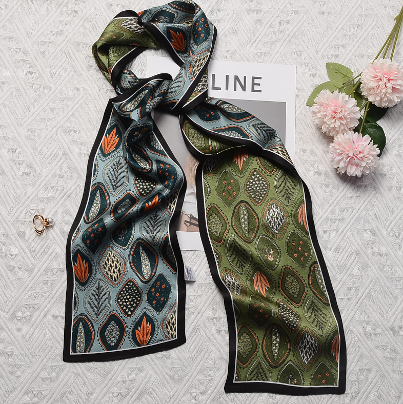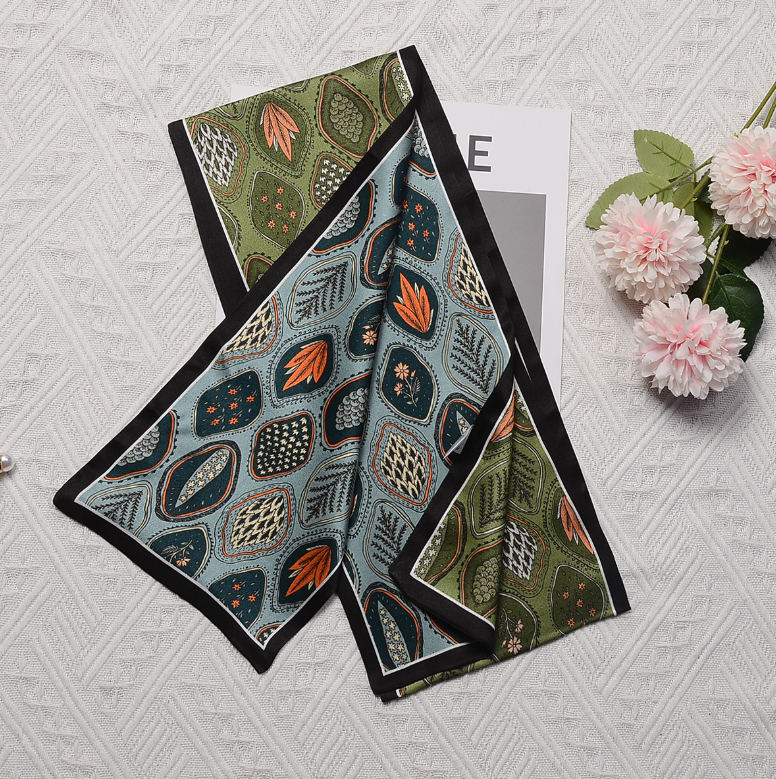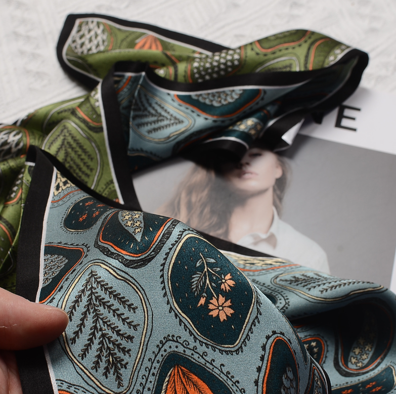 $ 8.29New Boutique 100% Crepe De Chine Silk Printing Hand Rolled Collar Scarf 70cm
