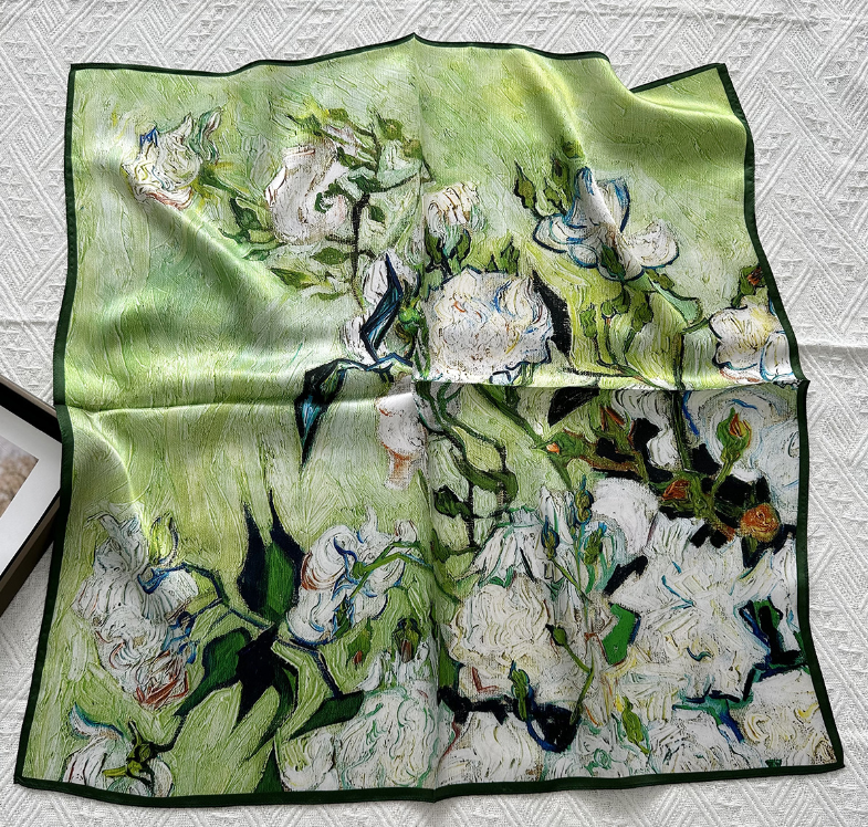 Pure 12 Momme Silk Wrap Scarf Pink Town Print 27 Inch Square Shawl