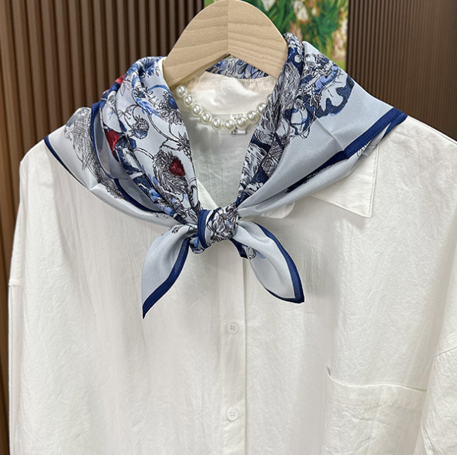 $ 31.68Pure 18 Momme Twill Silk Bandanna Scarf Wrap Knight Print Square Shawl 88X88cm