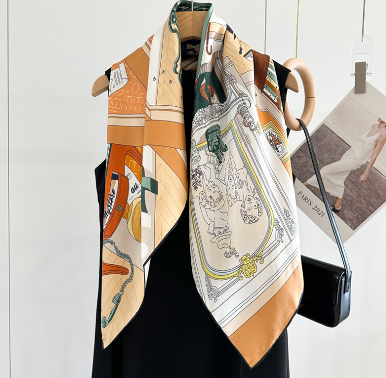 Versatile neckerchief print for adding some elegance and detail to a dark blouse or shirt. Quality jacquard twill with a great feel. Packaged well, great price, arrived quickly for overseas. Very good seller.