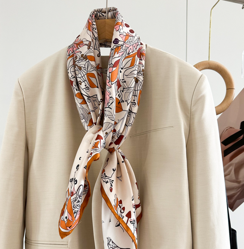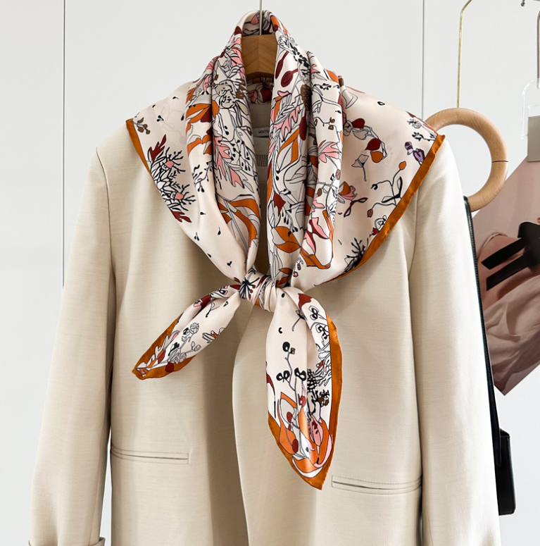 $ 21.12Pure 14 Momme Orange Room Print Silk Scarf 88x88cm Wrap Shawl Bandanna