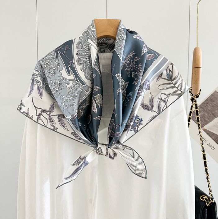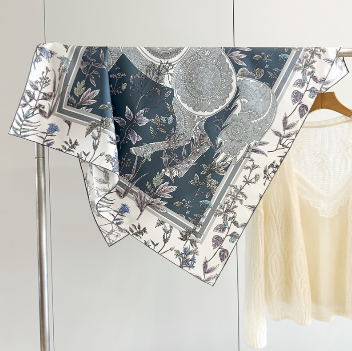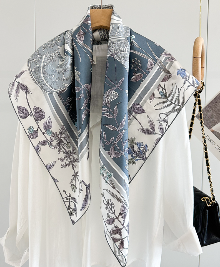 Pure 14 Momme Silk Wrap Scarf Bandanna deluxe room Print Square Shawl 35'' new