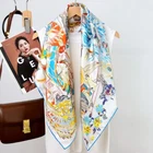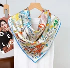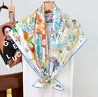 $ 6.1314 Momme Twill Silk Scarf Floral Print Square Shawl 27 Inch Wrap Bandana