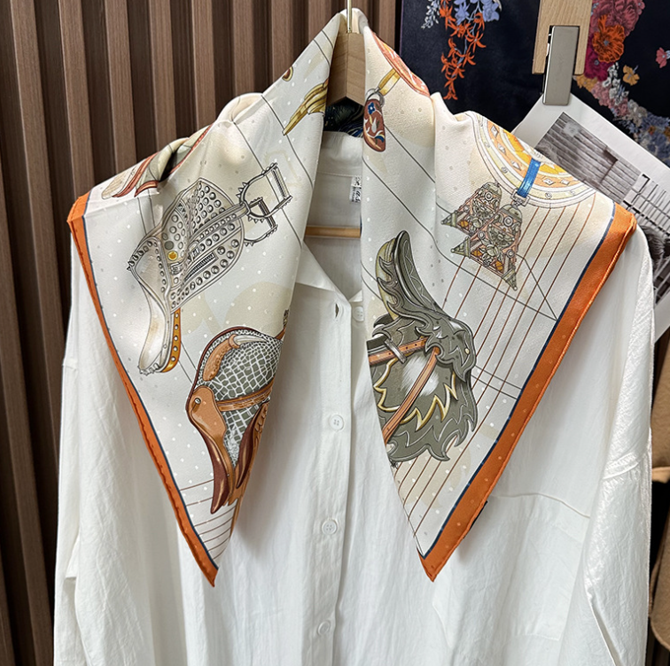 $ 31.68Pure 18 Momme Twill Silk Bandanna Scarf Wrap in Tussock Print 88x88cm Square Shawl
