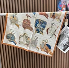 Pure 18 Momme Twill Silk Bandanna Scarf Wrap rabbit Print Square Shawl 88X88cm