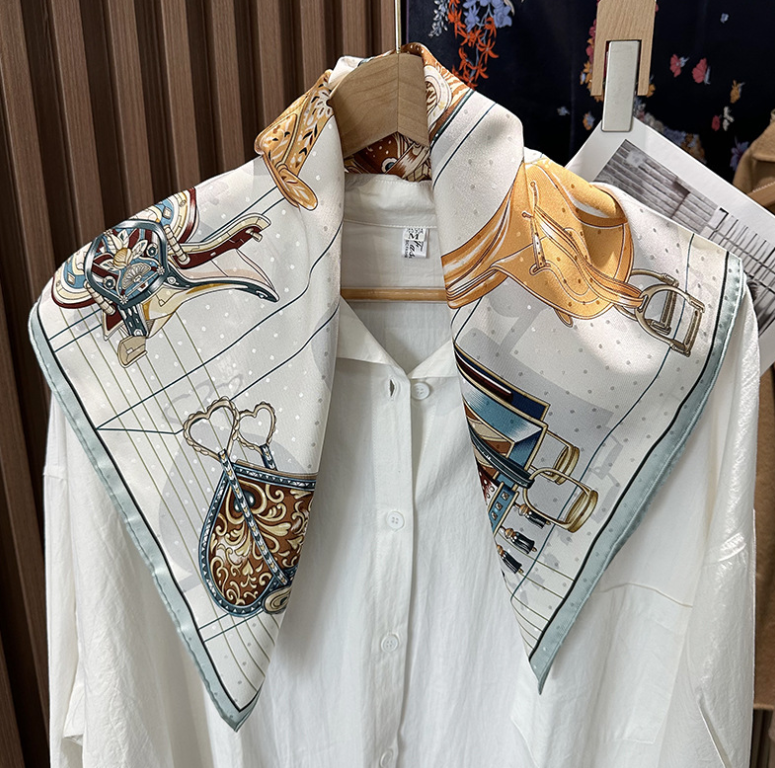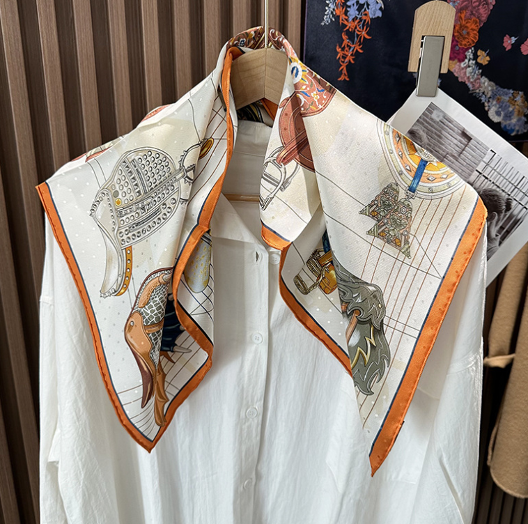 $ 31.68Pure 18 Momme Twill Silk Bandanna Scarf Wrap Windmill Print Square Shawl 88X88cm