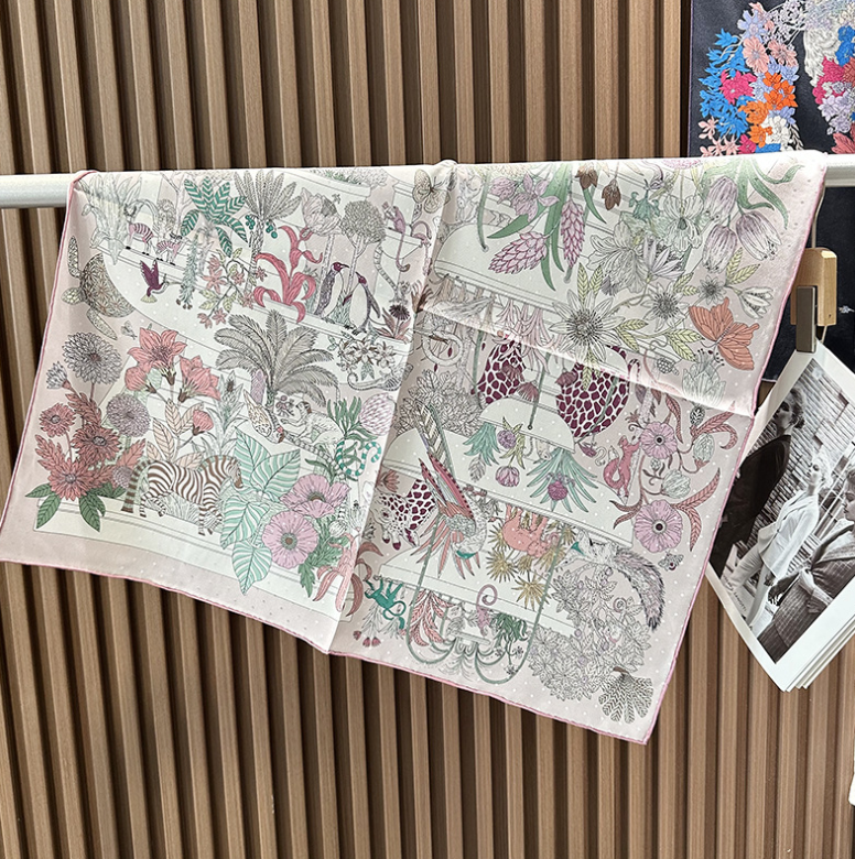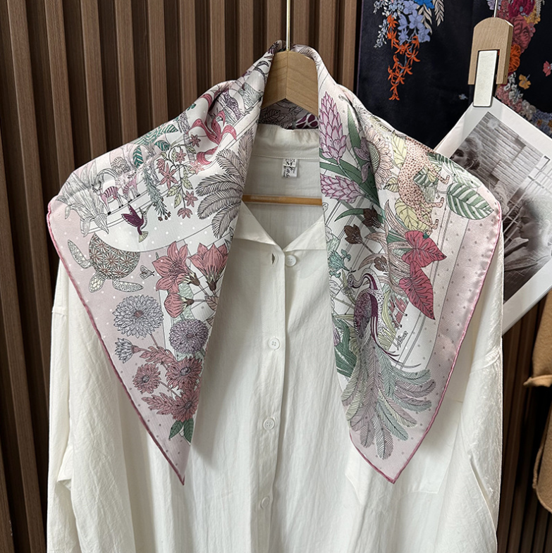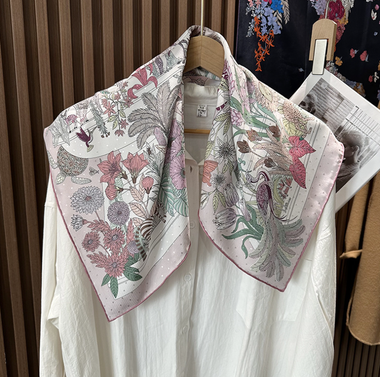 2025 Sallys 18 Momme Twill Silk Wrap Scarf Saddle Floral Print Square Shawl 35"