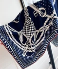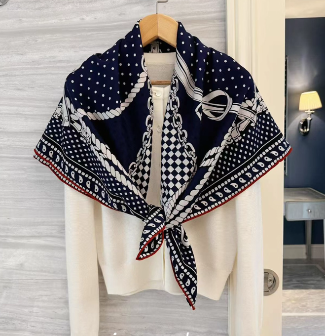 Pure 18 Momme Silk Wrap Scarf Bandanna White lines Print Square Shawl 86X86cm