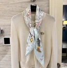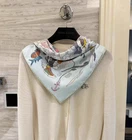 $ 216.01Pure 16 Momme Silk Bandanna Scarf Wrap Blue brown totem Print Square Shawl 26''