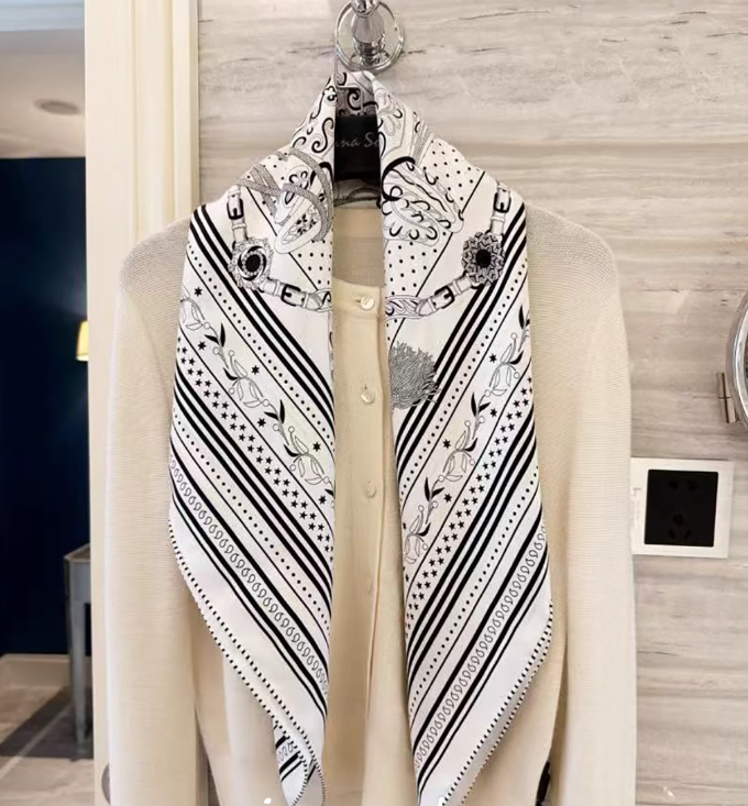 I love my gorgeous silk scarf which is more beautiful than the picture!! Exactly what I wanted and looks perfect with my sweater! I was amazed by how quickly it arrived— I got an excellent price on the scarf and on shipping, too! I will definitely keep this seller!! THANK YOU SO MUCH!!