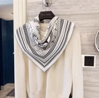 $ 6.34Pure 18 Momme Silk Wrap Scarf Bandanna Blue saddle Print Square Shawl 86X86cm