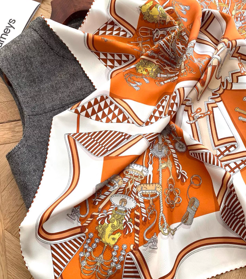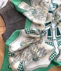 Pure 18 Momme Twill Silk Bandanna Scarf Wrap Equestrian Print Square Shawl 35''